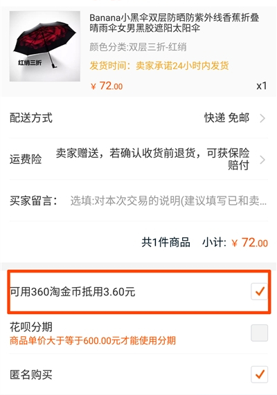 7, 下单的界面如果支持淘金币抵扣, 也记得勾上↓